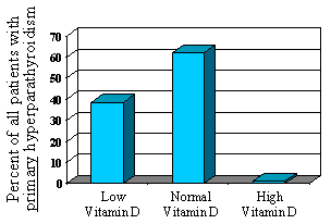 We began measuring Vitamin D levels in patients with hyperparathyroidism in the mid-1990's. For the past several years, we have measured it in most patients, and beginning in 2003 we began measuring Vitamin D in every patient with PRIMARY hyperparathyroidism. Here is what we found in our recently published article on 10,000 patients with primary hyperparathyroidism: